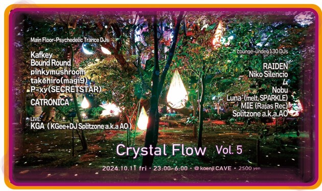 Splitzone a.k.a AOが、CAVEや野外fesで知り合った素敵なDJを集めてお送りするCrystal Flow。