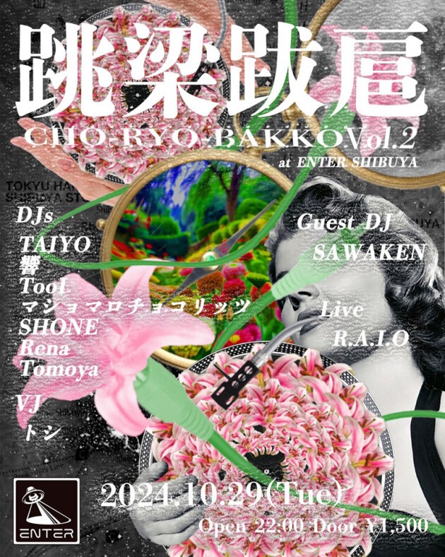 7月、フォトグラファーTaiyo Tanidaと、グラフィックアーティストTooi の2人からなる初個展を締めくくるイベントとして開催されたハウス、テクノからなるイベント跳梁跋扈。今回はその第2弾である跳梁跋扈vol.2を開催。