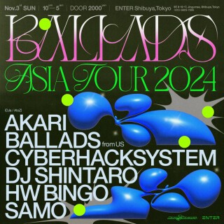 アメリカはオレゴン州、ポートランドを拠点に活動するプロデューサーであり、DJのBallads。今は無きRedbull Music Academyの卒業生でもある彼は、国境を超えてプレイされるグローバルなクラブミュージックとDJエディットに熱中し、100曲以上にも及ぶエディットを作り上げてきた。その数々が、Boiler RoomやCoachellaといった大舞台でプレイされ、DJにも造詣のある彼ならではの巧みな編集力のエディットは、Skrillex、KennyBeats、RLGrime、Baauer、Tinashe、Jyoty、Fred again、Mr.Carmack、ApeDrums、CRAZE、FourColorZack、SinjinHawke、Flosstradamusなど多くの著名アーティストらが自身のUSBにストックしている。名実ともに十分なBalladsが、2024年に遂に待望の海外デビューを発表。10月末よりベトナム、ダナンを皮切りにアジアツアーを敢行する彼が、日本に降り立つのは11月3日、東京渋谷ENTERのみ。Y2Kカルチャーの火付け役といっても過言ではない、渋谷の知る人ぞ知るダンスミュージックプロジェクト、Rave Racersのブレイン CYBERHACKSYSTEM、2013年red Bull Thre3Style世界チャンピオンの座に輝き、リミックスワークや著名アーティストとタッグしたリリースを重ね、USツアーを決行したDJ SHINTARO、プロデューサーユニットHABANERO POSSEやTYO GQOMのメンバーであり、さらに某Raveクルーの一員でもあるHW BINGO、大阪の中枢を担うパーティFULLHOUSEのレジデントとして本格的にキャリアをはじめ、アイデンティティに紐づいたパッション溢れるエネルギッシュなプレイで日本全土を駆け回るSAMO、K-POPをルーツにオールジャンルスタイルのミックスを得意とするAKARIがこれからさらなる活躍が期待されるBalladsを迎え入れる。
