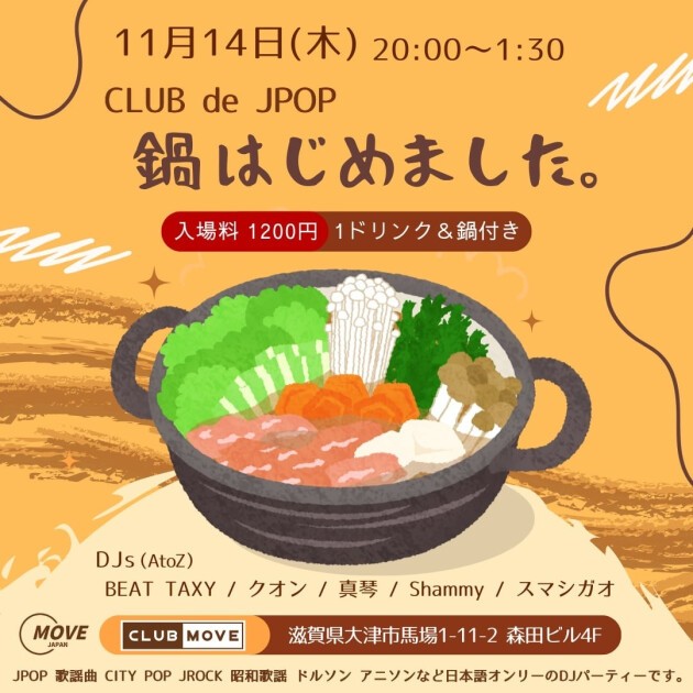 A DJ party with a hotpot feel! Let's all gather around a hotpot and enjoy music and conversation! This is the kind of DJ party you'll be having. On the day, we'll have a special hotpot made by DJ Sumashigao! It's delicious to listen to and eat!