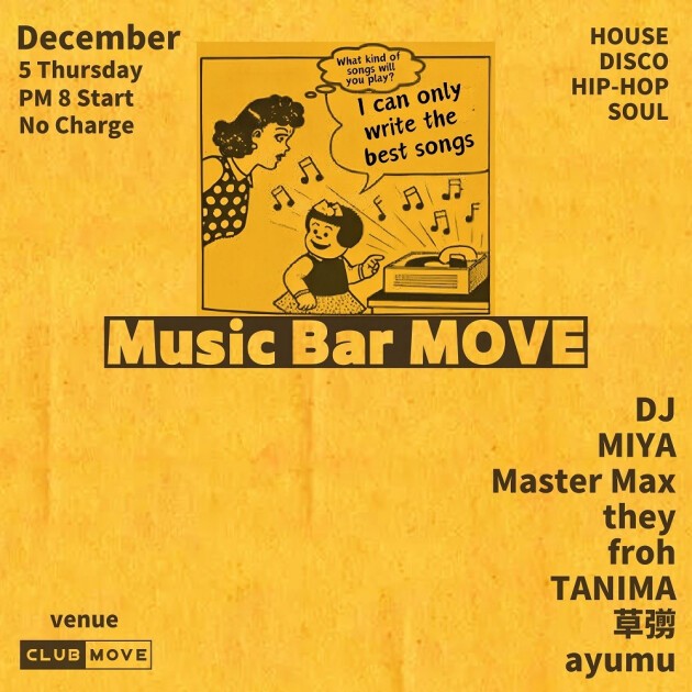 DJ BAR営業のこの日はMOVE界隈の様々なメンバーがプレイします。