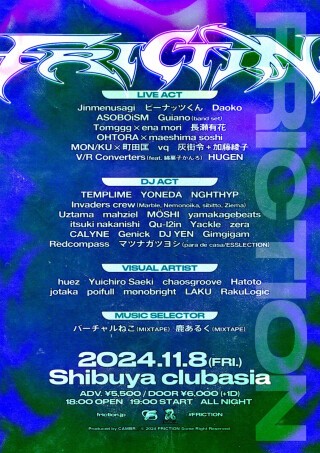 クリエイティブプロダクション・CAMBRがプロデュースする、次世代のカルチャーに捧ぐナイトイベント「FRICTION」。混沌と秩序が入り乱れた時代の分岐点に、新たな“熱”を巻き起こす体験をここからはじめよう。Jinmenusagi、ピーナッツくん、DAOKOらが出演する記念すべき初回開催!