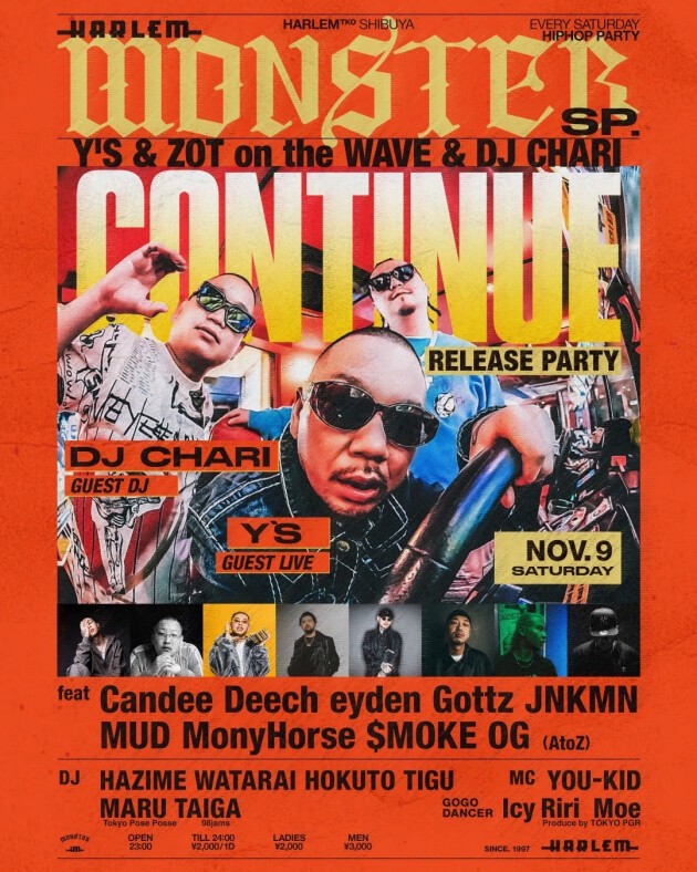 [HARLEM] MONSTER SP -Y'S & ZOT on the WAVE & DJ CHARI【CONTINUE】Release Party-