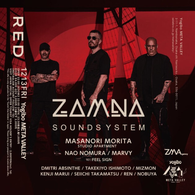今回は現在世界各国で圧倒的な人気と動員数、そしてブランド力を誇るフェスティバル”ZAMNA FESTIVAL”から生まれたスーパーDJユニット【ZAMNA SOUNDSYSTEM】の初来阪公演が実現。