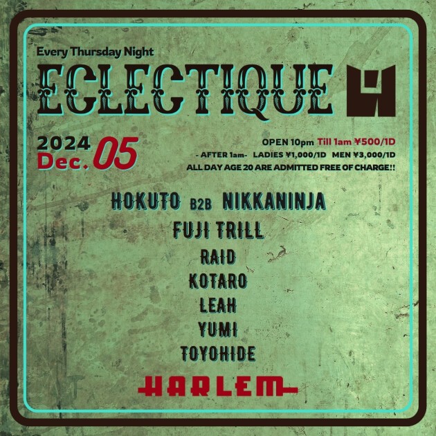 DJ: HOKUTO, FUJI TRILL, RAID, NikkaNinja, KOTARO, LEAH, YUMI, TOYOHIDE