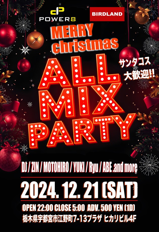 POWER8.BIRDLAND CHRISTMAS ALL MIX PARTY ▼DJ ZIN MOTOHIRO YUKI Ryu ABE