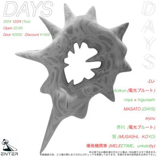 主に原宿で活動を行うヘアスタイリストMasatoによる主催パーティ DAYS のVo.3を渋谷にあるナイトクラブの発信地enterにて開催。