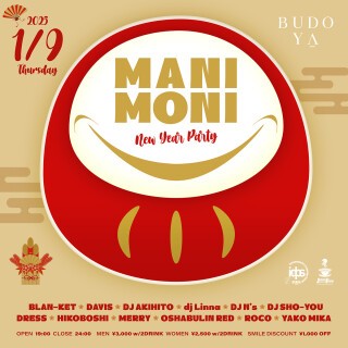 梅田 BUDOYA より「新しい形のディスコパーティ」をクリエイトするレギュラーイベント MANI MONI。1月9日木曜日の夜19時より、豪華ラインナップで New Year Party が開催決定!