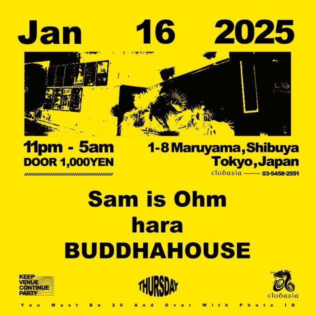 ✸ BUDDHAHOUSE, haraの2人がResidentを務める第2木曜clubasia "THU"。