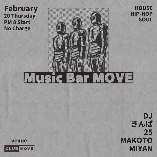 DJ BAR営業のこの日はMOVE界隈の様々なメンバーがプレイします。