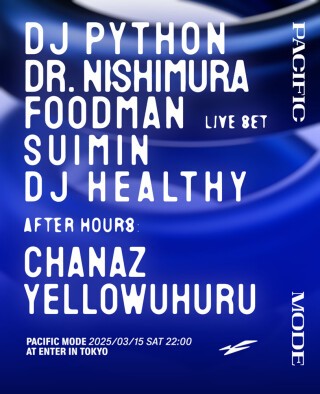 悪魔の沼からDr. NISHIMURAがPACIFIC MODE / ENTERに初出演し、食品まつり aka foodman、suimin、YELLOWUHURU、Chanaz,、DJ HealthyとPACIFIC MODEにも出演してきた豪華メンバーが出演する。