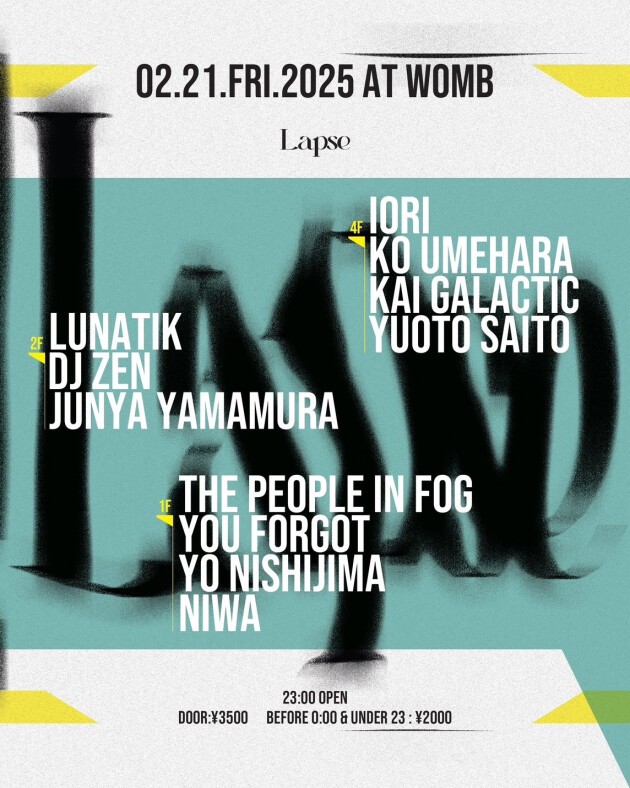 A brand-new concept from lift founder Junya Yamamura, Lapse makes its debut at WOMB, promising a night where each space unfolds a different sonic landscape.