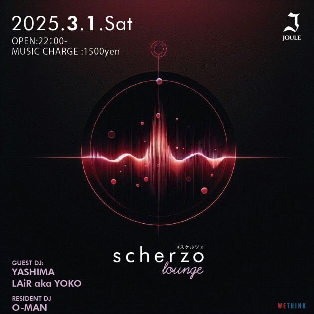 "A new evolution of SCHERZO – an intimate lounge setting with deep, sophisticated techno, tech house, and progressive house. Featuring only veteran DJs from Kansai, this exclusive event lets you immerse yourself in refined beats, sip expertly crafted cocktails, and dance freely in a stylish atmosphere. Experience the seamless fusion of music and nightlife."