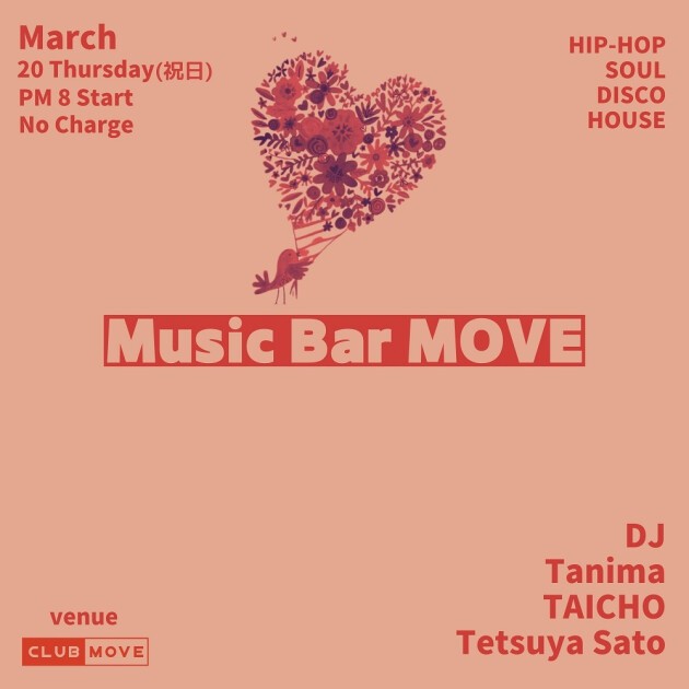 DJ BAR営業のこの日はMOVE界隈の様々なメンバーがプレイします。