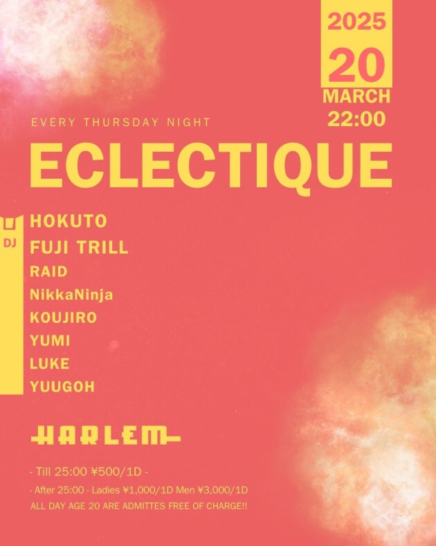 DJ: HOKUTO, FUJI TRILL, RAID, NikkaNinja, KOUJIRO, YUMI, LUKE, YUUGOH