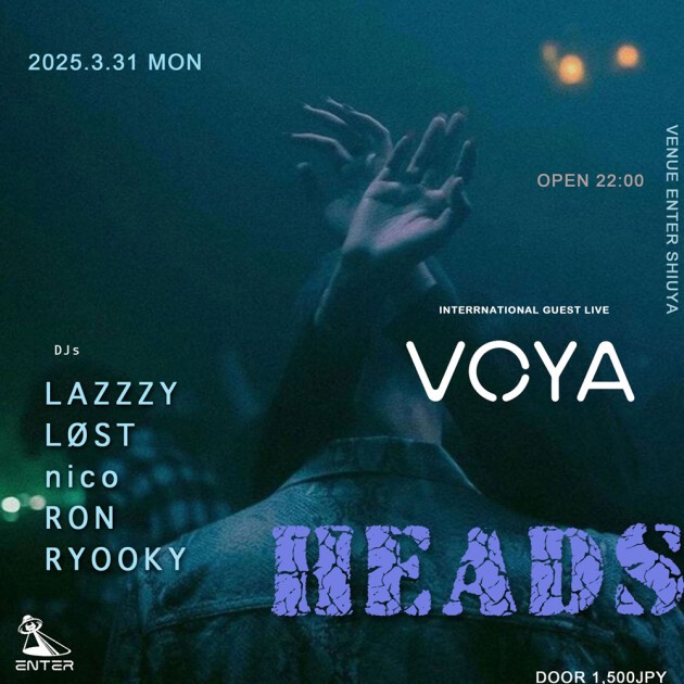 "HEADS" is an event organized by Ryooky, who also runs the MeetingPointFestival, bringing together numerous artists across psytrance, techno, and hip-hop live performances. For the first time, an international guest has been invited: Israeli techno artist VOYA.