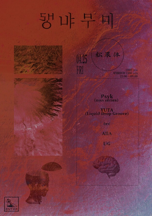Additionally, YUTA, representing Liquid Drop Groove, will take the stage. A multi-talented curator, YUTA is known for his role in organizing Okinawa’s open-air festival Agatida and for his diverse curatorial efforts across Tokyo venues. He recently launched the deep techno project "Pendulum" with UG, Shoukatai’s founder, at ENTER. Furthermore, his latest initiative, "Arrhythmic Pendulum," diverged from dancefloor-oriented music to explore a more immersive listening experience. As a DJ, YUTA masterfully constructs spaces and selections that are both trance-inducing and psychedelic, guiding audiences into profound mental journeys. His unparalleled approach positions him as a pioneering force within Tokyo’s techno and underground music scenes.