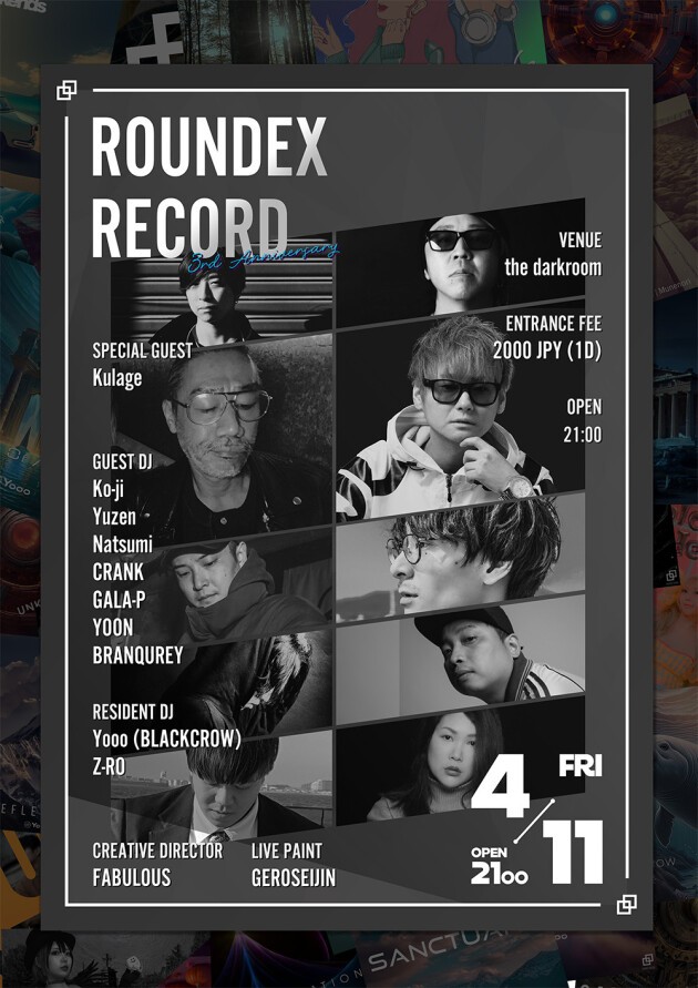 ゲストDJとしてKulageを迎え、ROUNDEX RECORDで楽曲をリリースを行ってきたDJが豪華出演! 活動を応援してきてくださった関係者の方、リスナーの皆様、一緒に3年目のスタートをお祝いして頂けませんか?