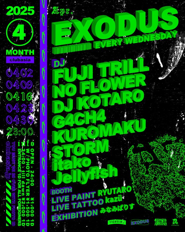 ✺ FUJI TRILLをはじめ多方面に活躍するDJ , BeatMakerが毎週水曜の渋谷の夜をにぎわす通称 " #エクソ "。LIVE PAINT, LIVE TATTOO, EXHIBITIONも隔週でcheck。