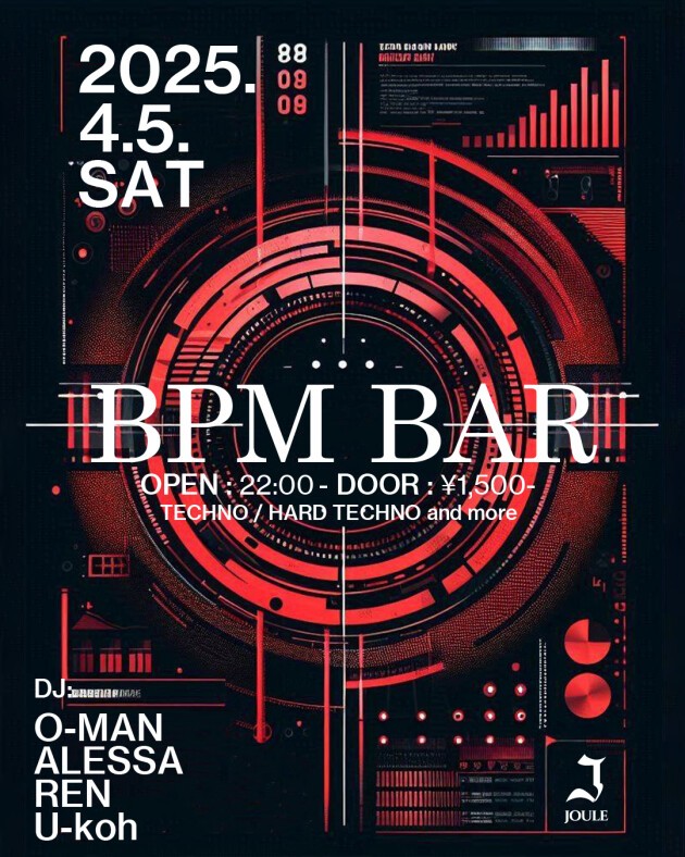 "Sip the beat, feel the groove. Welcome to BPM BAR @clubJOULE – Osaka’s hotspot for techno lovers. Enjoy handcrafted cocktails, deep basslines, and an electrifying vibe in the heart of NAMBA!"