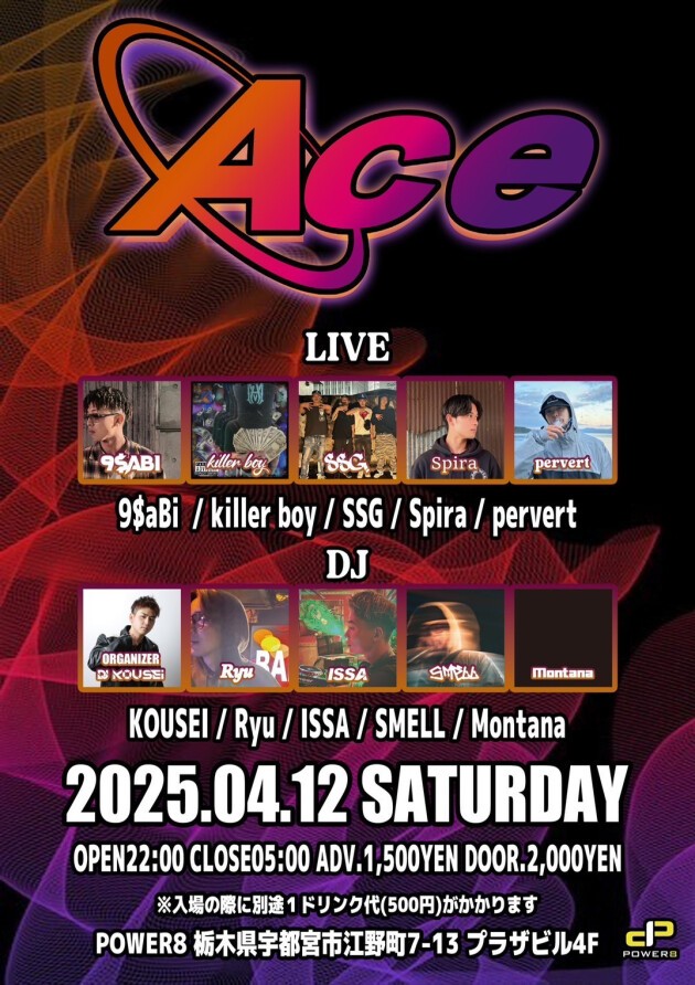 『Ace』◆ LIVE 9$aBi killer boy SSG Spira pervert ◆DJs KOUSEI Ryu ISSA SMELL Montana