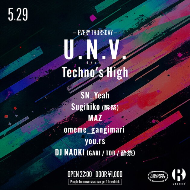 UDAGAWA NIGHT VOICE (U.N.V.), a night party every Thursday, has started.