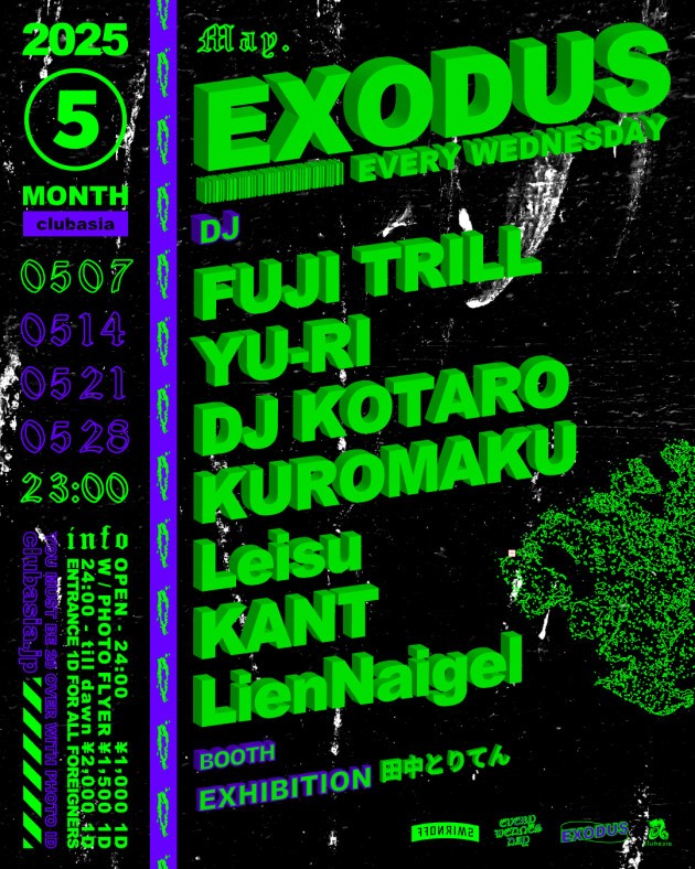✺ FUJI TRILLをはじめ多方面に活躍するDJ , BeatMakerが毎週水曜の渋谷の夜をにぎわす通称 " #エクソ "。LIVE PAINT, LIVE TATTOO, EXHIBITIONも隔週でcheck。