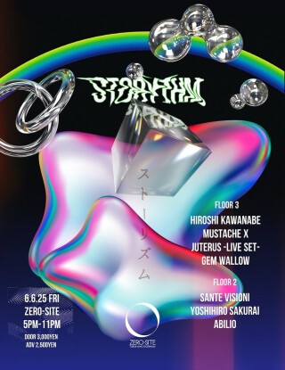 STORYTHM、ストーリズムは解放的かつ深層部を感じられる音楽環境の中でアーティストが紡ぐ音楽に没頭しながらも高濃度の音像を同じ空間にいる人たちと共有できることでそのリズムとともにドラマチックなストーリーを体感できるパーティである。