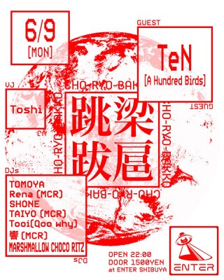 昨年7月、フォトグラファーTaiyo Tanidaと、グラフィックアーティストTooi の2人による初個展を締めくくるイベントとして開催された 跳梁跋扈 。今回はその第4弾を開催。跳梁跋扈とは、ほしいままに跳ね回る、行動するという意味合いがあり、誰かが作った世界にとらわれるのではなく、自分たちの理想を現実にするために自らの足で切り拓き、今しかないこの瞬間を突き進む自分たちの姿を表した。今回はスペシャルゲストとして、大阪を拠点としたダンスミュージックオーケストラユニット A Hundred Birds のメインボーカルやCM、ナレーション、シンガーソングライターとしても活動しているTeNが参戦!唯一無二のハーモニーとグルーヴを、ぜひ会場で体感してほしい。
