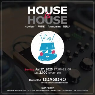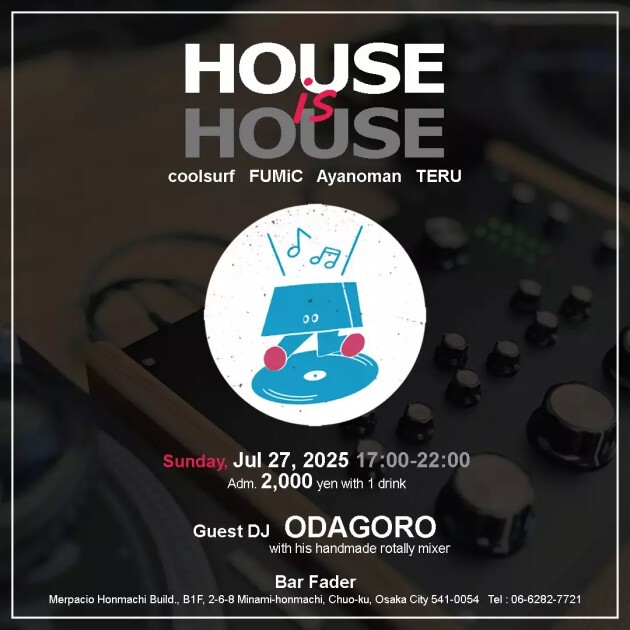This time, HOUSE is HOUSE celebrates its 1st anniversary, and we’re thrilled to welcome ODAGORO from the Kanto region as our special guest. Even more exciting: all DJs will be playing on a one-of-a-kind, custom-built rotary mixer crafted by ODAGORO himself. Expect deep, warm sounds and a rich, analog vibe throughout the evening.