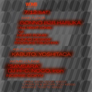 In February, Wata Igarashi and Occa took the stage together, sparking major buzz. This time, Gonno—who played an epic open-to-last set at last year’s Womb anniversary—joins forces with Haruka, now an internationally touring artist playing every weekend across the U.S. and Europe, for their first-ever B2B all night long set. Expectations are high for what this duo will create over the course of the night.