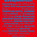 ”サンデーアフタヌーン”は人種や性別を越え、人と人の繋がりから生まれるエネルギーを 何より大切にしながら、NYと東京を行き来するToshiyuki Gotoが20年以上続けてきたパー ティ。Contact閉店後はしばらく休止していたが、期間限定でオープンしている話題のヴェ ニュー”ZERO-SITE Takanawa Gateway”での開催が決定!