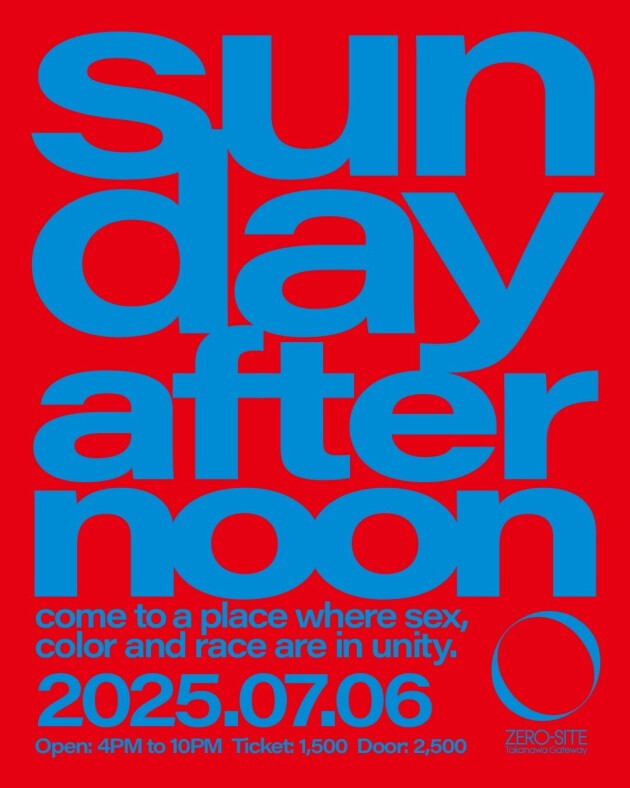 "Sunday Afternoon" is a party that Toshiyuki Goto has been hosting for over 20 years, traveling between New York and Tokyo, with a deep emphasis on the energy born from human connection—beyond race and gender. After taking a break following the closure of Contact, the party is now set to return for a limited time at the much-talked-about venue "ZERO-SITE Takanawa Gateway." Held from Sunday evening into the night, the event welcomes not only dance music lovers but also families with children to enjoy the vibe together.