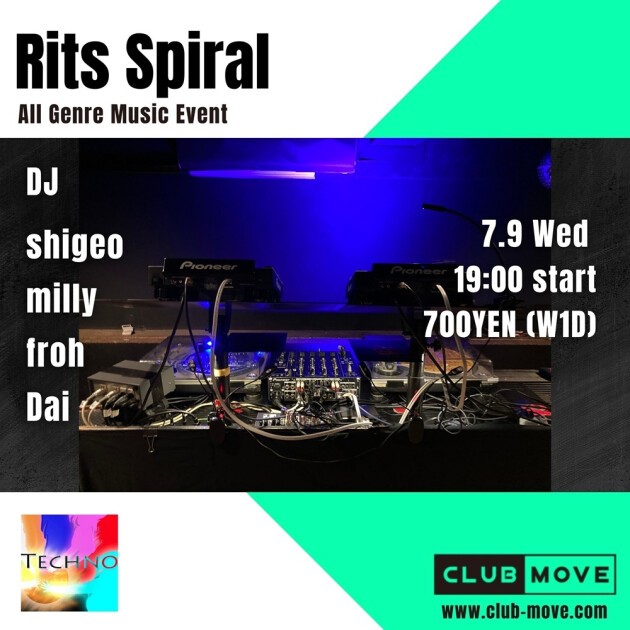 "Rits Spiral" is an all-genre event held on the second Wednesday of every month by Ritsumeikan University's DJ club, the "Ritsumeikan Techno Club."