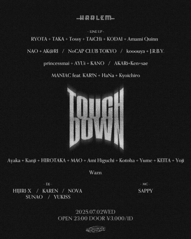 LINE UP: RYOTA + TAKA + Tossy + TAiCHi + KODAI + Amami Quinn, NAO + AK@RI, NoCAP CLUB TOKYO, kooouya + J.R.B.Y., princessmai + AYUi + KANO, AKARi+Ken+sae, MANIAC feat. KAR!N + HaNa + Kyoichiro, Ayaka + Kanji + HIROTAKA + MAO + Ami Higuchi + Kotoha + Yume + KEITA + Yoji, Wazn