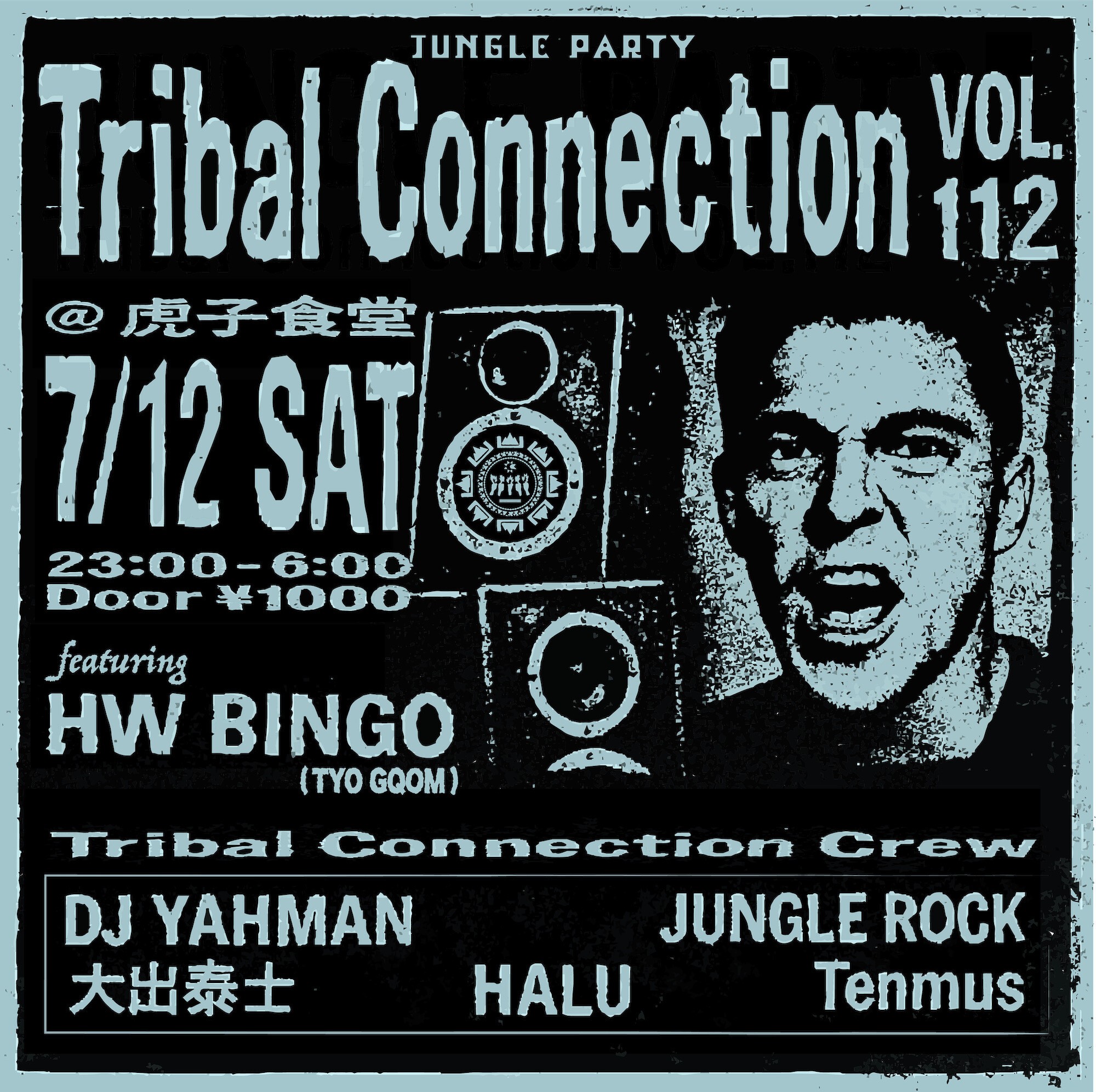 Tribal Connectionは、2009年に始動。現在、DJ YAHMAN、JUNGLE ROCK、大出泰士、Tenmus、HALUの5人で構成。各自のバックグラウンドを軸に多角的なジャングル活動を行い、JUNGLE PARTY Tribal Connectionを奇数月第2土曜に渋谷の虎子食堂にて開催中。2023年11月の開催通算100回目/創立14周年祭は、開始直後に満員御礼。2024年、創立15周年。
