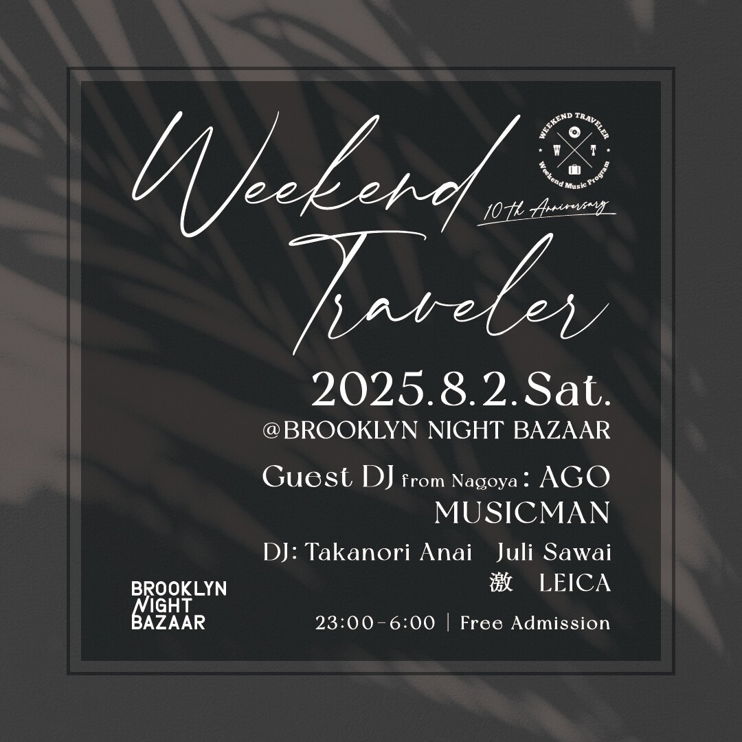 京都・木屋町の鴨川が見えるサウンドバー “BROOKLYN NIGHT BAZAAR” で毎月第1土曜日に開催。