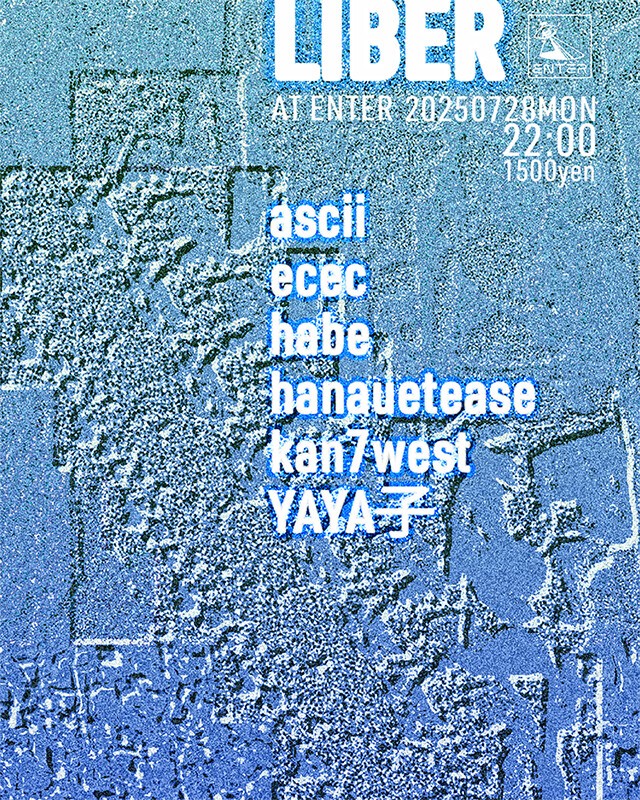 電子音楽マニアを唸らせる新進気鋭のアーティストを呼び集めるLIBER。現行のカルチャーの中心を担うであろう若手のアーティストが邂逅する。古代ローマの生産と豊穣と酒の神であるLIBERの名の通り、瞬間毎に音楽が創造される贅沢な夜会がENTERで開かれる