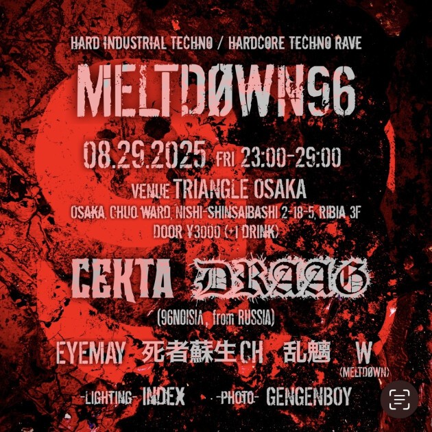 "MELTDØWN" is Hard Techno / Hardcore Techno Rave based on industrial sound, in Osaka Japan.