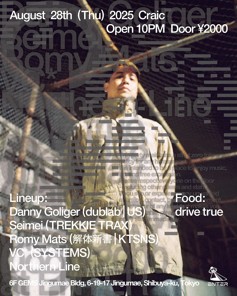 Seimei, co-founder of the label 〈TREKKIE TRAX〉 and a core member of the TREKKIE TRAX CREW, has performed at festivals such as Fuji Rock and ULTRA JAPAN. Just months ago, he completed a successful US tour alongside his brother Carpainter, and continues to play both domestically and abroad as a solo act. In 2024, he released the 「Tokyo Funky Breaks EP」 on NYC-based 〈Sorry Records〉, a project premiered by both DJ Mag and Mixmag—cementing his reputation as a skilled producer.