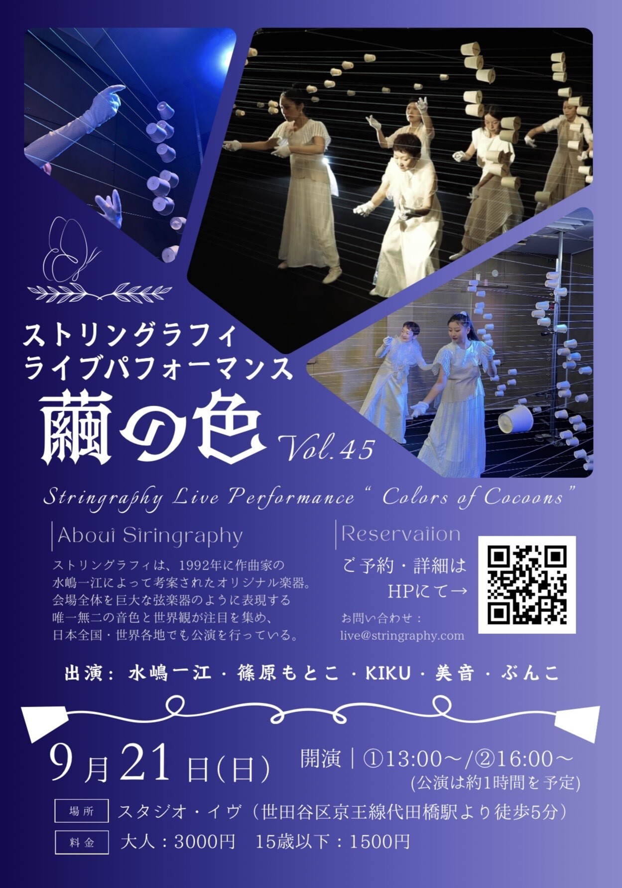 Welcome to an enchanting evening at Studio EVE! Join us on September 21, 2025 at 4:00 PM (Asia/Tokyo) for an immersive experience of Stringraphy Live Performance titled "Colors of Cocoons".
