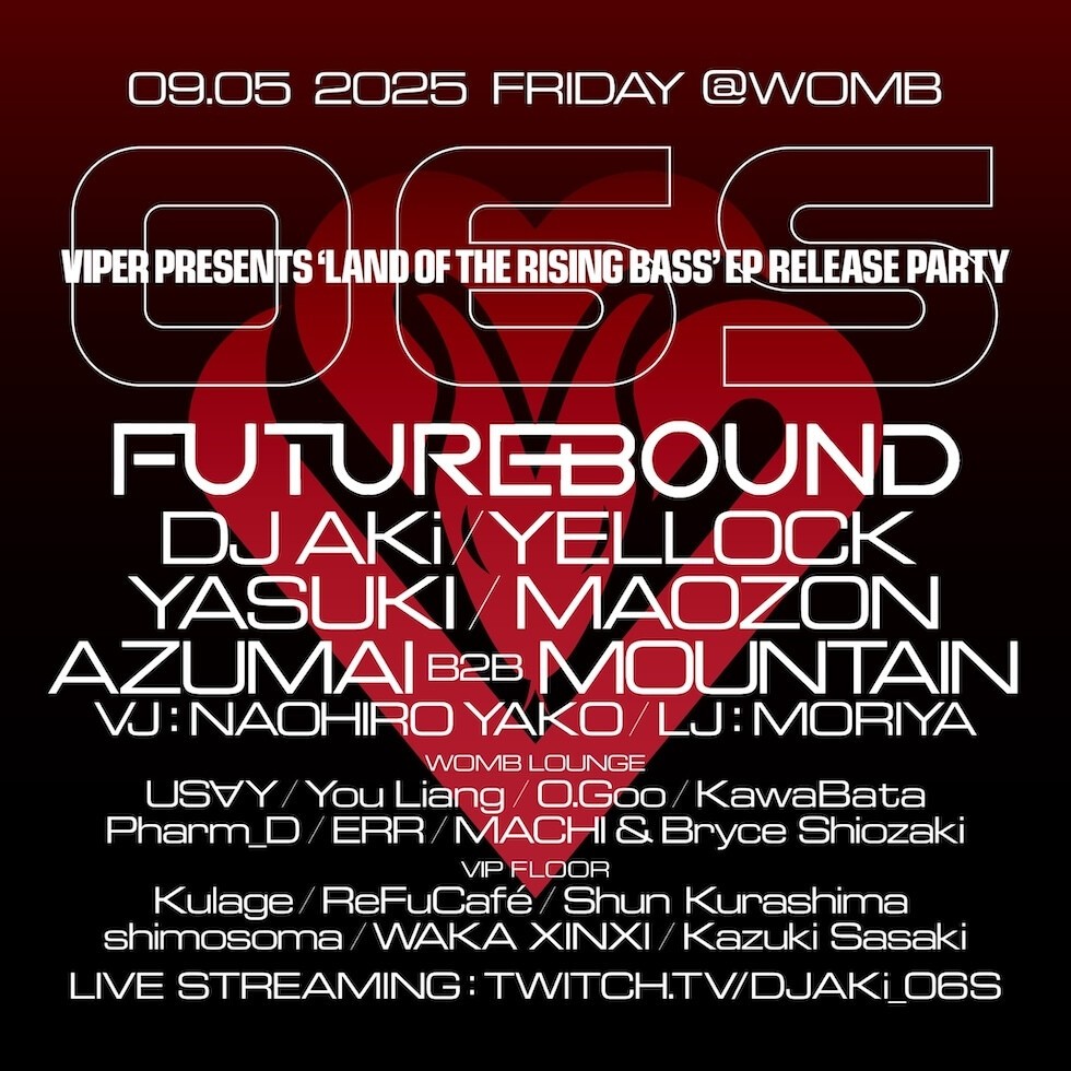 With a long-standing relationship with 06S, UK’s legendary label Viper Recordings, which celebrated its 20th anniversary last year, proudly releases this milestone EP featuring Japanese drum & bass producers. Alongside residents DJ AKi, YELLOCK, and YASUKI, the tracklist includes works by MAOZON, AZUMAI, MOUNTAIN, DJ YOUTH, Seventhrun, and mimiiQ.