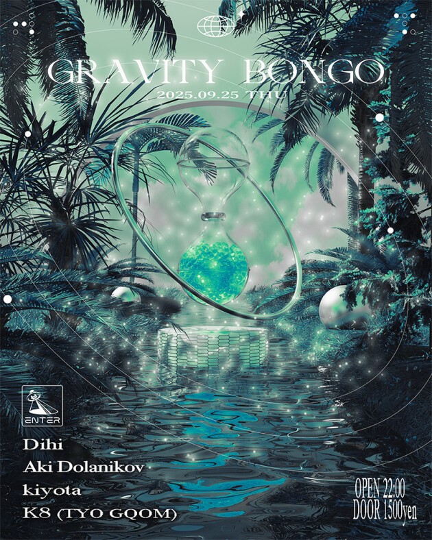 TYO GQOMのK8によるパーティGravity Bongo。 2023年2月より定期的に開催している本パーティは、根幹にあるベースミュージックへの深い愛と民族音楽へのセンサーが鋭敏なDJ陣がラインナップされ、毎度異なるゲストを招きながらも一貫したアティチュードでベースミュージックラバーから支持を得ている。レジデントであるGQOMクルーTYO GQOMのK8を筆頭に、300yardsを企画するDihi、コズミックサイケデリクスAki Dolanikov、憑依・POTIONのレジデントkiyotaと、ハウスのグルーヴに照準を合わせた出演陣が揃う。低音と民族音楽を軸にそれぞれの個性とセンスが織り混ざったダンスミュージックが鳴り響く