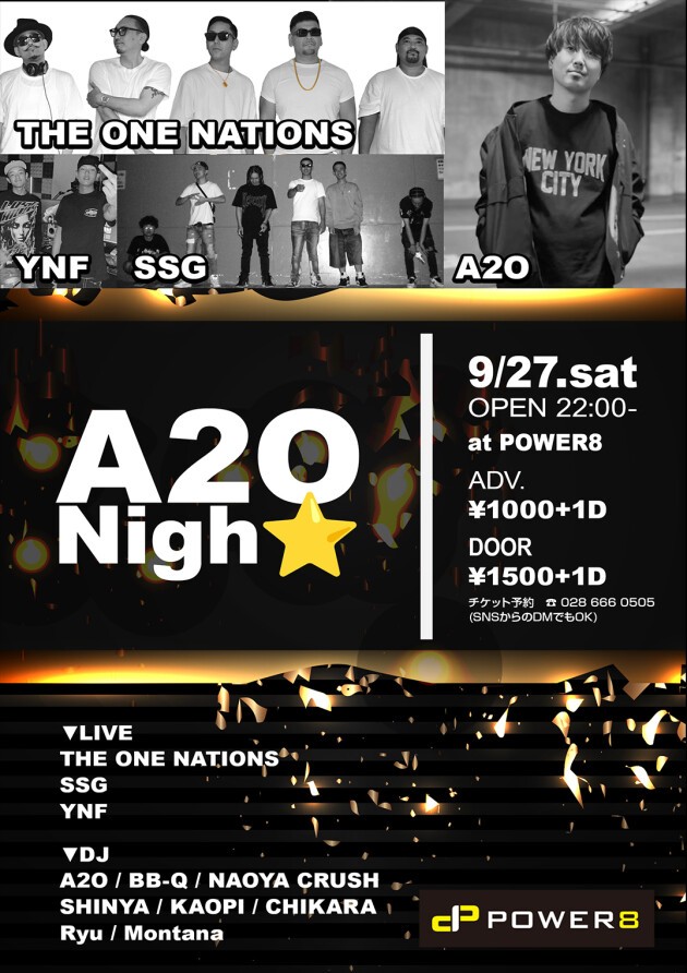 【A20Nigh⭐︎】▼LIVE THE ONE NATIONS,SSG,YNF,▼DJ,A2O,BB-Q,NAOYA CRUSH,SHINYA,KAOPI,CHIKARA,Ryu,Montana,