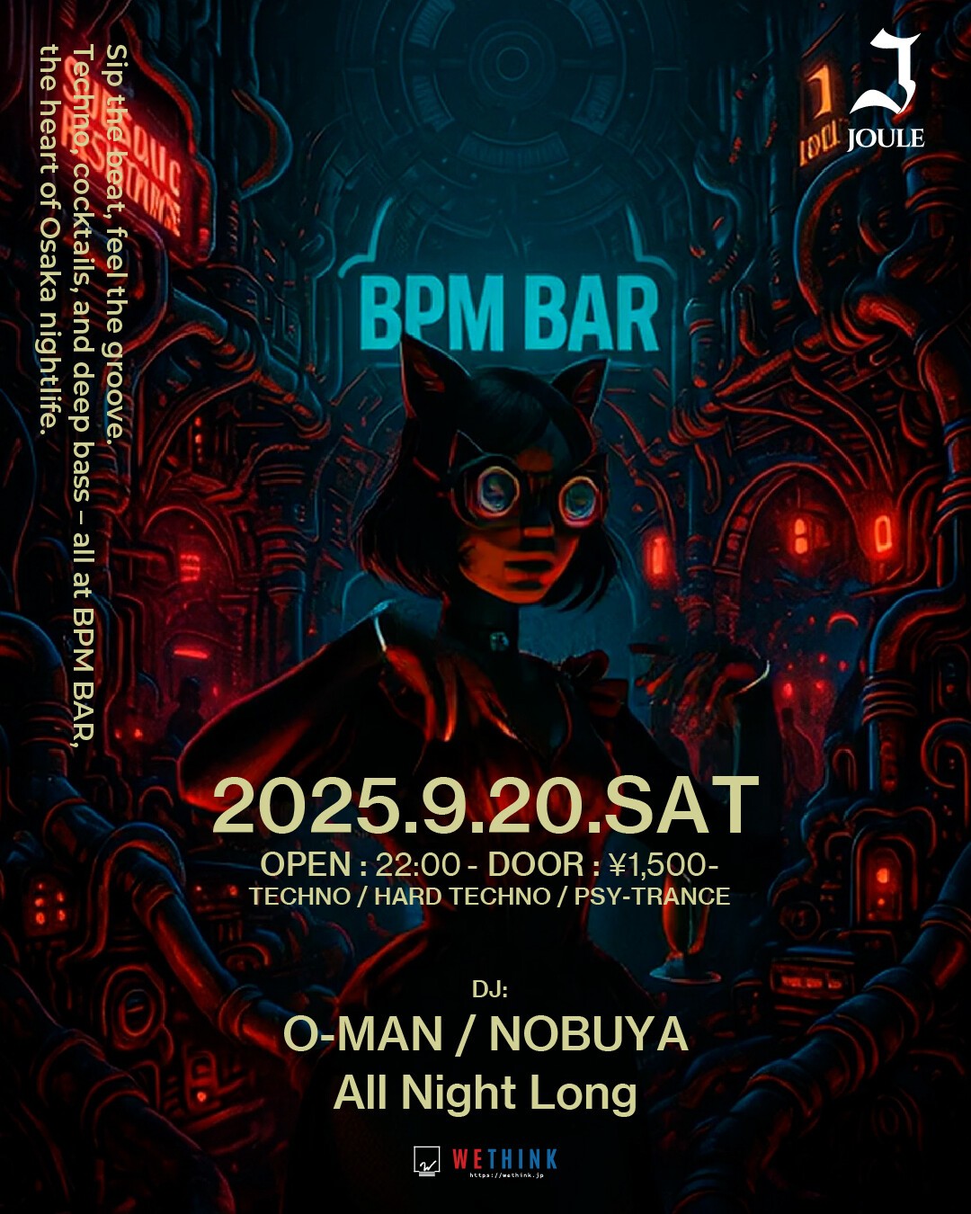 At BPM BAR Osaka, O-MAN and NOBUYA take over with an ALL NIGHT LONG SET! From techno to psy-trance and afrohouse, experience a sonic journey