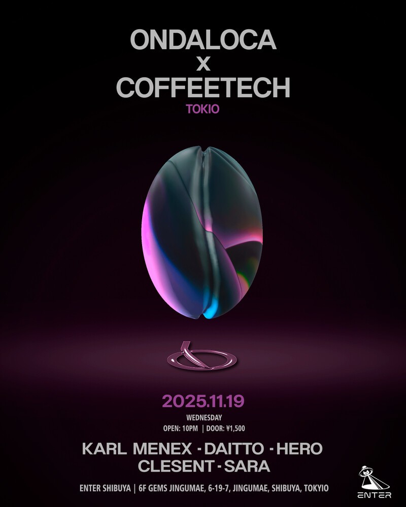 今回はスペイン・バルセロナの人気パーティCOFFEETECHとのコラボイベントとして開催。バルセロナから主宰のDJ/プロデューサーのKARL MENEXが初来日。国内からは先月のヨーロッパツアーでバルセロナのCOFFEETECHでプレイしたばかりのDaitto、ULTRA RESISTANCEの出演で勢いに乗るCLESENT、そしてVENTや自身が主催するSYNCでプレイするHEROとディープな選曲とグルーヴでプレゼンスを高めるSaraが初登場。