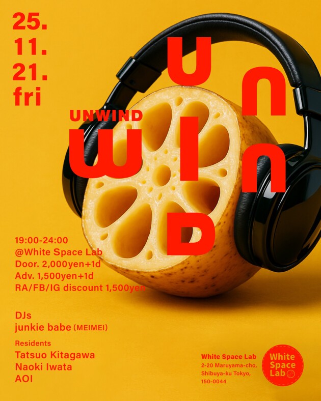 渋谷のアンダーグラウンドVenue @White Space Labでのディープハウスパーティ ”UNWIND” 心地良いディープハウスを軸にOrganic house / Downtempo, deep tech, electronica, ambientなどクロスオーバーに新しさと実験的且つモダンなサウンドを心地良く体感できるディープハウスパーティ”UNWIND”