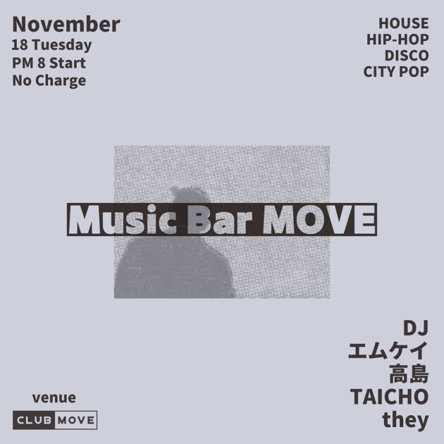 DJ BAR営業のこの日はMOVE界隈の様々なメンバーがプレイします。