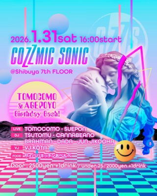 COZZMIC SONIC marks its 11th edition, featuring a vibrant lineup of artists and their striking acid sounds, and also celebrates the Birthday Bash of organizer TOMOCOMO and 7th FLOOR manager AGEPOYO.