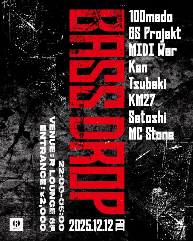 渋谷R-Loungeにて開催するベースミュージックパーティーBASS DROP。